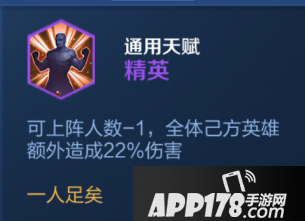 精英是通用型A级天赋,主动降低一个等级,所有英雄伤害提升。这个天赋就很适合刺客流阵容,而且配合羁绊进阶天赋使用的时候,两个的负面效果还会抵消,而且保留增益效果。