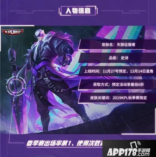 “天狼星计划”第二款皮肤曹操天狼征服者即将闪亮登场!恭喜在KPL春季赛表现优异的曹操大佬喜提新衣他是时尚自负的著名音乐制作人,他也是天狼星计划的创始人,带领超能力小队守护城市的和平,你发现画中的其他天狼星成员了吗?帅气的曹操新皮肤,召唤师们喜欢吗。