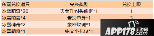 活动期间最多获得冰雪萌奇*44个,完成累计登录7日可获得冰雪萌奇*21个(可直接兑换天美Timi头像框)