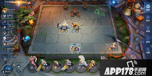 老夫子升上去之后,就可以开始刷商店。因为我们需要大量的金币来刷英雄,所以遇到长安可以先用长安的羁绊来攒钱,虽然对我们来说没有多少输出效果,但是攒钱还是很方便。钱攒差不多就可以开始升人口买英雄,把之前的长安英雄逐渐换成长城守卫军,玩家要注意的是最好是先换上李信跟花木兰,这样我们可以立刻获得四战士羁绊,增强目前的输出效果。