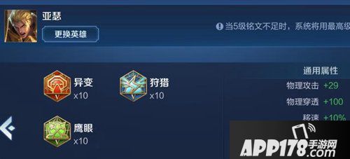 这套铭文主要是用来对付脆皮敌人,所以百穿铭文在前期能够很有效的针对还没有防御装的敌人。而且10%的移动速度加成在针对没有位移技能的敌人,能够有效提升亚瑟二技能的打击效果,配合百穿铭文就能够在前期争取拿到一血。