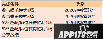 总共可通过新年挑战活动获得2020迎新雪球*5