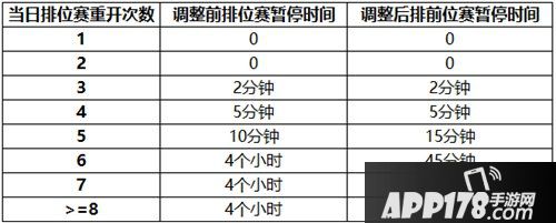 我们重新梳理了排位赛重开的相关数据,针对重开后暂停排位赛的时间进行了调整优化,让规则更加的合理,降低对部分玩家的影响,具体规则如下:
