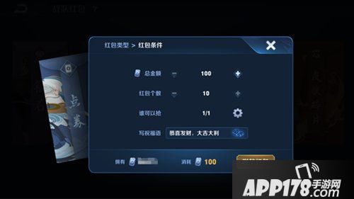 单个红包的个数下限为10个、上限为50个;金额下限为100点券、上限为2000点券