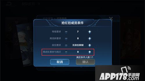 ③抢红包的成员条件,新增条件:周战队赛参与场次。
