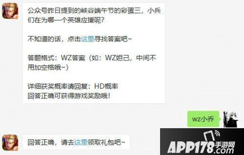 今天的王者荣耀每日一题的问题有一定难度,6月22日的问题是公众号昨日提到的峡谷端午节的彩蛋三,小兵们在为哪一个英雄应援呢?大家知道这个问题的答案吗?回答正确可获得抽奖资格,小编我特意整理了相关的资讯,下面就是小编带来的今日王者荣耀每日一题答案,一起来看看吧。