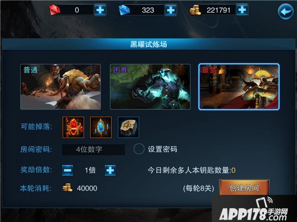 多人副本活动中,创建的房间难度越高,掉落的圣器几率更大、符文等级更高;达到一定的vip等级,创建房间,可以选择通关奖励倍数,一次通关多倍奖励收益,对应消耗的金币也会成倍增加。