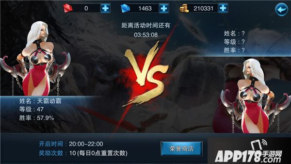 参与战斗可以获得荣誉勋章,勋章可以用来在荣誉商店中兑换装备和其它稀有道具;每天拥有10次奖励次数,每日0点次数重置;奖励次数全部使用后,仍可匹配对手进行战斗,但不会再获得相关战斗奖励。