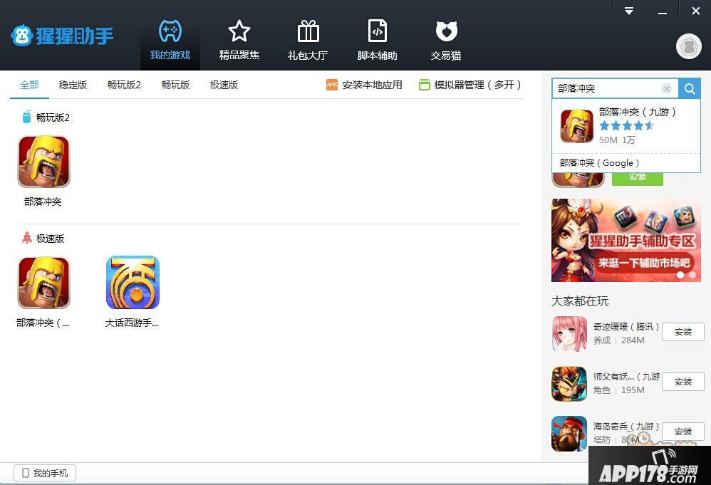 当然,有时候猩猩助手更新没有那么快,各位小伙伴们可能在第一时间没能搜到最新的游戏。没关系,大家可以进入APP178手游星辰奇缘专区,点击下载星辰奇缘本地游戏的apk文件,将最新版的星辰奇缘下到电脑上,然后打开猩猩助手"安装本地应用",进行安装就可以实现在电脑上玩星辰奇缘啦。