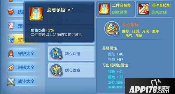 第二说一下宝物搭配,其实所有宝物加起来搭配方式很多,但是这里推荐大家幻影2+剑心2的套装,特别是在前期,性价比非常高!而且我们的3力加点,搭配这套宝物的属性,可以让我们更肉更能扛!