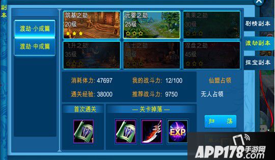 渡劫副本主要产出紫色鬼装、橙装材料、紫装合成卷轴和经验等内容,想拿好装备就去打渡劫副本吧!和剧情副本一样可以对已通关副本进行扫荡扫荡(VIP7开启)。一次消耗12点体力,注意体力消耗哦。