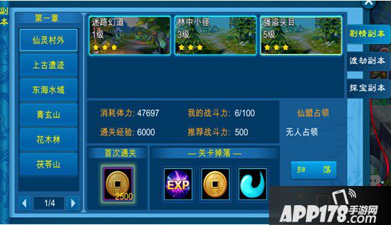 剧情副本主要产出是经验、蓝装、橙装合成所需材料之一。每次只需6点体力,缺什么来这里打吧,如果不想动手还可以扫荡已经打过的副本,不用手动过关就可以获得奖励。