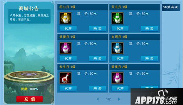 1、盟友可在仙盟商城中消耗一定个人贡献度换取道具;