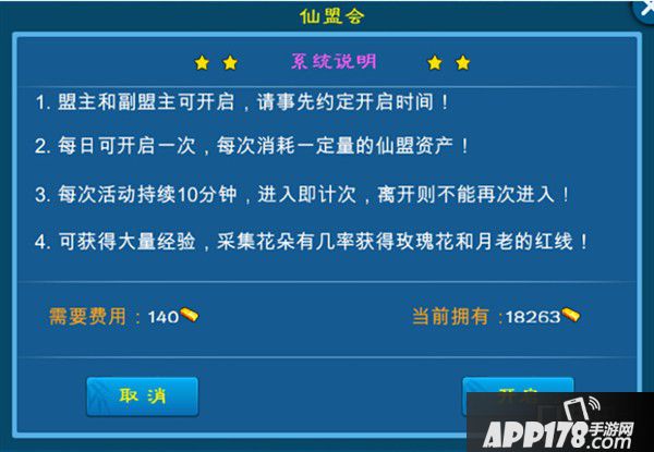 2、姻缘木等级越高,仙盟会场景中产出的道具越好越丰富。