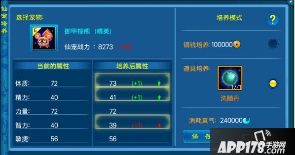 值得一提的是,仙宠培养并不是无条件的,除以上仙宠的品质要合格外,培养环节还需消耗一定真气。此外,道具培养比铜钱培养能够更快的达到每个品质仙宠的培养上限,所以上仙们还是从自身仙宠情况出发,来制定培养大计吧!
