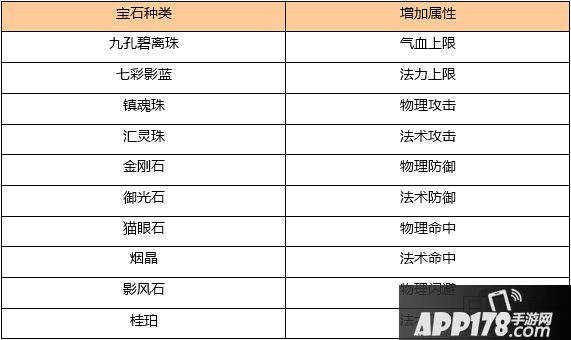 不同种类的宝石,可以增加角色不同的属性。