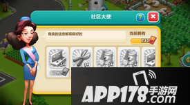 四、社区大使购买,社区大使每天9点更新建材,是用感谢信购买。感谢信可以通过帮助别人获得,如去别人家摸狗,复活花,树,帮助别人装船,满足别人的求购这些方式都可以获得感谢信。在好友栏,附近的人里和刷报纸时可以看到有感叹号提示,就表示别人需要帮助。兑换时,可以根据自己的需求兑换,缺什么就兑换什么。当然,如果平时是活雷锋,多帮助人,感谢信自然多,就什么都可以兑换了!