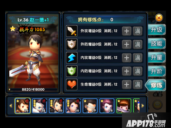 侠客的培养方式分别为:升级、升星、升阶、修炼四种。