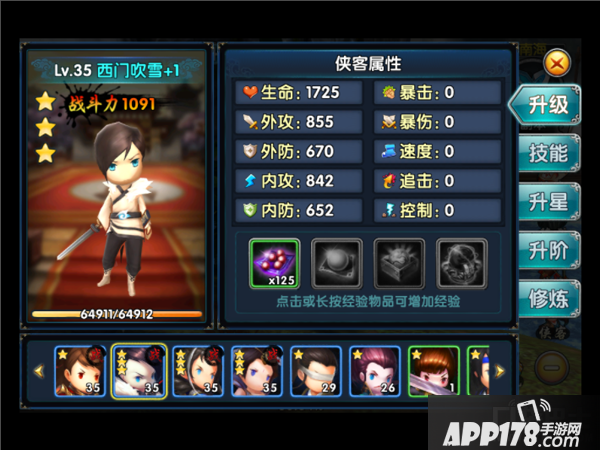 侠客升级可通过完成副本或者消耗经验道具增加经验。