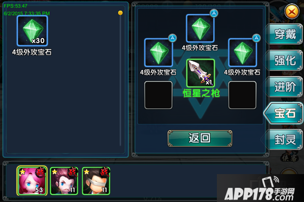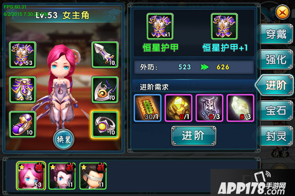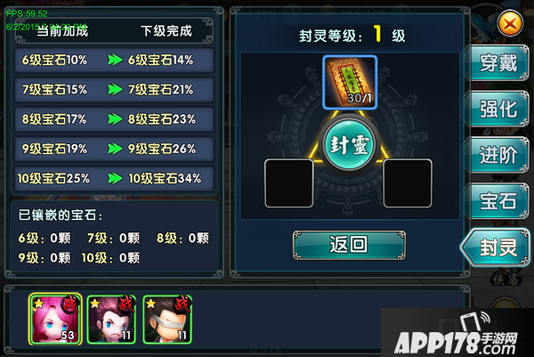 装备培养分为:强化、进阶、宝石、封灵四种玩法。