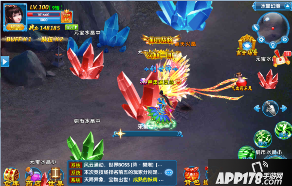 幻境中有多种水晶可采集,分别是铜币水晶,元宝水晶和女娲石水晶。越高品质的水晶奖励越好,采集所需的时间也越长。每天晚上22点开启水晶幻境活动,活动期间采集水晶可获得双倍奖励,并且会刷新出带有3种奖励的至尊水晶。