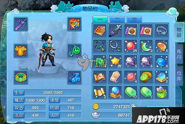 1、人物装备:人物装备包含6类,其中各项基础属性分别是:武器(攻击)、头盔(防御)、铠甲(防御)、项链(法攻法防)、腰带(防御+气血)、靴子(强防御+速度)。
