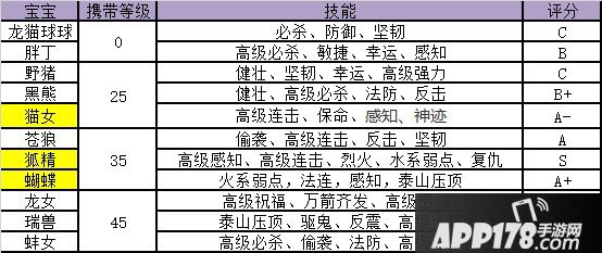以上就是小编针对新手期(54级前)玩家的宠物推荐。为了方面广大玩家阅读,小编特意总结了下面这个表,希望能对各位玩家有所帮助!