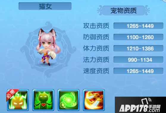 最后是猫女,本身携带高级连击、保命、感知、神迹,攻资和野猪、黑熊一样,但是速度资质却远远甩开了(1265-1449),整体评分而言,相对高于其他两只宠。猫女洗宠也不贵。只需3个宠物丹,一旦幸运地洗出变异宠,直接收获5个技能。猫女评分A-级。