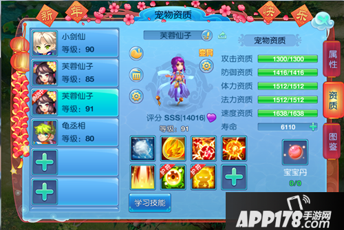 小编的芙蓉七技能,风花雪月、高级迅捷、高级法连、高级法爆、高级通灵、恐惧、高级神佑
