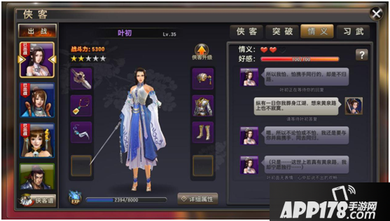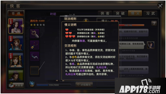 3、 情义:与侠客进行对话,可以提升情义。