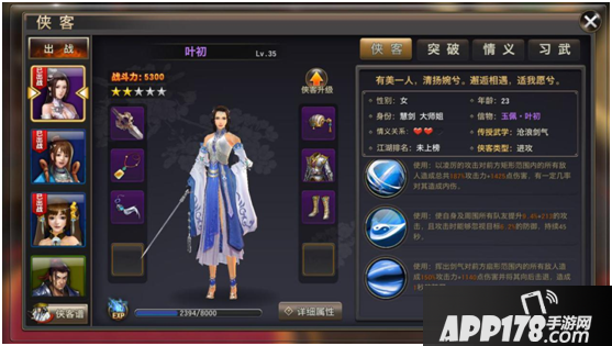 1、 侠客:介绍该侠客信息,技能。