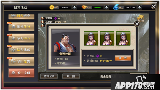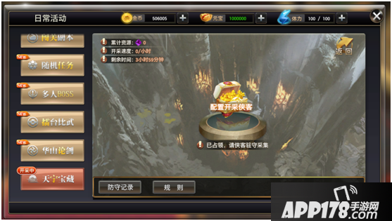 天宁宝藏:先把资源守护者击杀再派侠客搜寻挖掘资源宝藏。