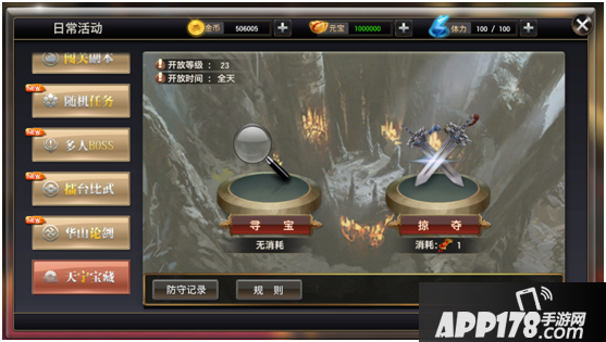 寻宝可以通过随机搜索宝藏并占领后可获得资源;掠夺是通过消耗掠夺卡进行搜索他人占领的宝藏。