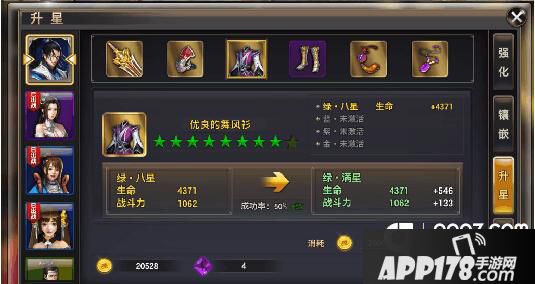 装备升星需要用到升星石,绿色品阶升星石5个升一级,总共有八级,但是从二星升三星开始,不是百分百会升级成功,也就是看脸,随着升级星数越高,成功概率月底,若失败意味着你会浪费5个升星石,升星石也是很容易得到,每天完成任务可以得到一些,具体可以从天宁宝藏,多人boss,元宝商城,帮会商城等等都可以得到升星石,每天签到也能获得。所以装备升级星数越高,战斗力越强。