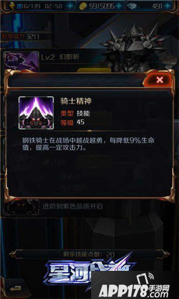 骑士精神:钢铁骑士在战场中越战越勇,每损失9%生命值,提高一定攻击力。