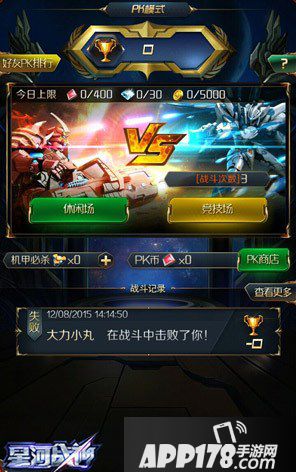玩家在PK模式之中,可以凭借获得的PK币来购买相应的零件和机甲碎片,能够让玩家获得一些比较稀有的装备,所以无论如何,每天都要把握PK的机会,这些珍惜的材料绝对能给让你感觉到物有所值。