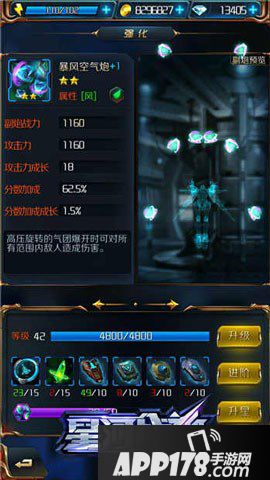 在星河战神中的的风属性的暴风空气炮与寒冰导弹一样属于追踪型副炮,利用高压旋转的气团爆开时所形成的攻击,对所有范围内敌人造成伤害。靠零件和金币就可以获得。蓝+1的暴风空气炮的分数加成为62.5%,分数加成成长为1.5%,可见其对于战斗总分还是有所贡献的。如果后期不断地对其进行升级、进阶和升星,暴风空气炮的威力会更加强大!