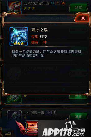 寒冰之泉的第二个缺点是其自身的攻击和防守能力不高。这是由于寒冰之泉的主要作用倾向于恢复性造成的。这个弱点使得在中后期没有护盾和强大装备支撑的玩家异常危险。毕竟在战斗中,机甲一旦失去了强大装备的保护,寒冰之泉恢复再多的血量都是无用的。