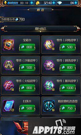 另外,装备的进阶材料是擂台商店购买的次要选择。小编觉得,这一类进阶材料大多可以通过关卡扫荡获得,比如紫+3的进阶材料碎片需要8000+的擂台币才能购买,这样的产出比并没有升星一个好机甲划算。