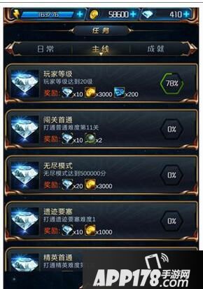 不管是日常任务、主线任务还是成就,都是会有相当高的钻石获得的哦!而且还可以获得钻石,特别是每日任务,给的经验那叫一个多啊!前期升级就靠它了!