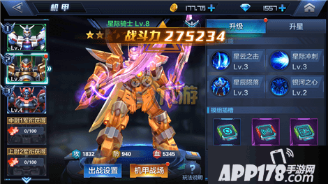 机甲是这款游戏的魅力之一,穿上它不仅能够轻松的作战,而且还非常的炫酷。机甲的培养是永久性的,机甲越强大对角色的战力加成就越高,所以放开手去提高机甲属性吧。