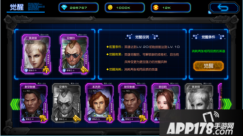 当指挥官达到20级,且自带技能达到10级满级时,可进行觉醒来提升卡牌的数值。消耗2张同品质的未进阶卡牌或者1张已进阶卡牌可以对卡牌进行觉醒。
