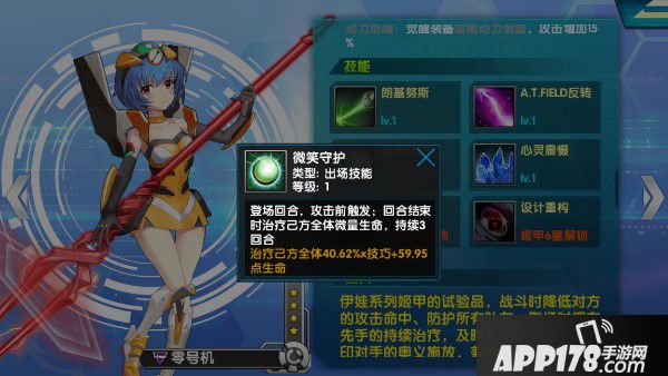 我们的零号机一般情况下可是不会笑的哦,哈哈!开个玩笑,我们的零号机登场时会为全体队员增加一个持续3回合的恢复效果,也就是说从开场我们就带着加血技能跟敌人对阵,有这样的效果有啥理由会输?!哈哈。