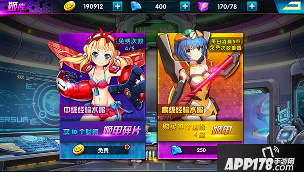 首先玩家最开始获得四星姬甲的地方就是抽取姬甲了。前几次的抽取十分关键,因为往往会决定玩家前期的主力阵容搭配思路。推荐付费玩家直接购买10个高级经验水晶,虽然价格比中级经验水晶贵了一些,但是获得的姬甲资质较高,多数为S资质的姬甲。普通玩家则进行中级经验抽取姬甲碎片,来获得前期属于自己的高星级姬甲。中级经验水晶最好是量力而行,因为等级高了之后,会发现金币完全不够用。