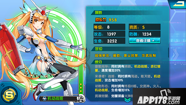 决定一张姬甲的培养价值最首要的一个因素,就是资质。很多玩家前期可能忽视了这个因素,到了中后期,就会发现自己的五星姬甲阵容,完全打不过别人的四星姬甲阵容。虽然战力比别人高一万多,但是打起来就一直是劣势。主要的原因就是姬甲的资质太低。高资质的姬甲武功会更加优秀,同样的等级,虽然星级稍微低一些,但是凭着技能和缘分的优势,依然可以打出优势。举个最简单的例子,B资质的三星轰天雷和S资质的二星的机动战姬。到了中后期,很多副本和竞技场等玩家对战中,会发现输出太高,都是瞬间的连招配合。在很多情况下,二星的机动战姬因为能够借助三星轰天雷的冻结技能打出一套爆炸伤害秒掉敌方一个姬甲而更加有用。
