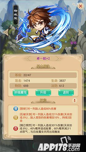 当然,最直接的提升战斗力的方式还是升级和进阶,升级可以直接提升各项属性,但伙伴等级的提升受到玩家等级的制约,所以玩家升级也是很重要的。伙伴进阶可以触发天赋技能,使得攻击、暴击、生命值等有不同程度的提升,但是,每进阶一次只能提升一个属性哦,不过他可是永久提升哦,伤害叠加也是很惊人的!