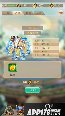 从主界面的伙伴按钮或是在队伍界面中点击伙伴,都可以进行伙伴的提升。提升伙伴自身战斗力主要的途径是升级和进阶。