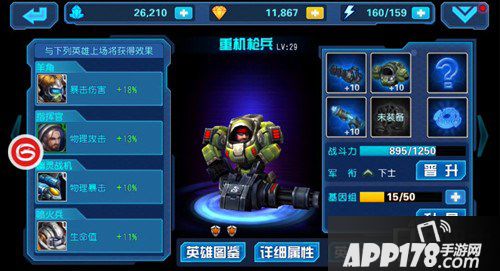 新手组合中指挥官和重机枪兵组合可获得物理攻击13%的加成,重机枪兵和喷火兵组合可获得生命值11%的加成,医疗兵和喷火兵组合可获得生命值10%的加成,幽灵和指挥官组合可获得物理穿透22%的加成。就是说,五个英雄组合后能做到每一个都获得额外加成效果,不过这个组合的缺陷就是都是物理攻击类型的英雄,能量防御薄弱,面对物抗较高或能量攻击强大的副本很难通关。