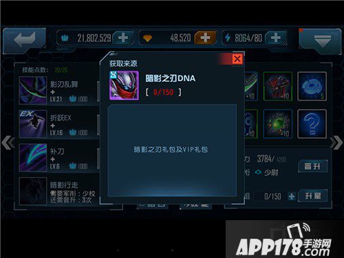 获取暗影之刃还是有一定的难度,可通过游戏活动充值1000元获得2星暗影之刃,也可以在商城的VIP礼包中购买获取碎片,作为一个制霸游戏的英雄,暗影之刃可是非常吃香的哦!