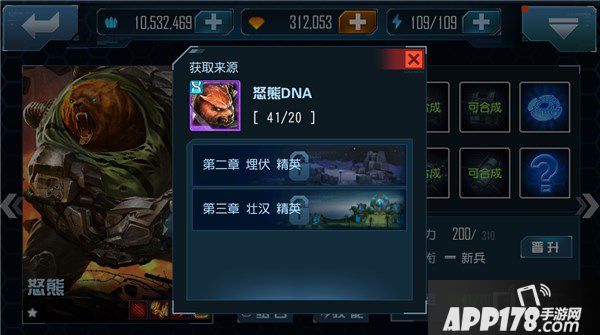 2、在精英关卡我们可以稳定获取怒熊的DNA,只要收集到一定数量我们就能合成怒熊或者对已拥有的怒熊进行后续的培养。
